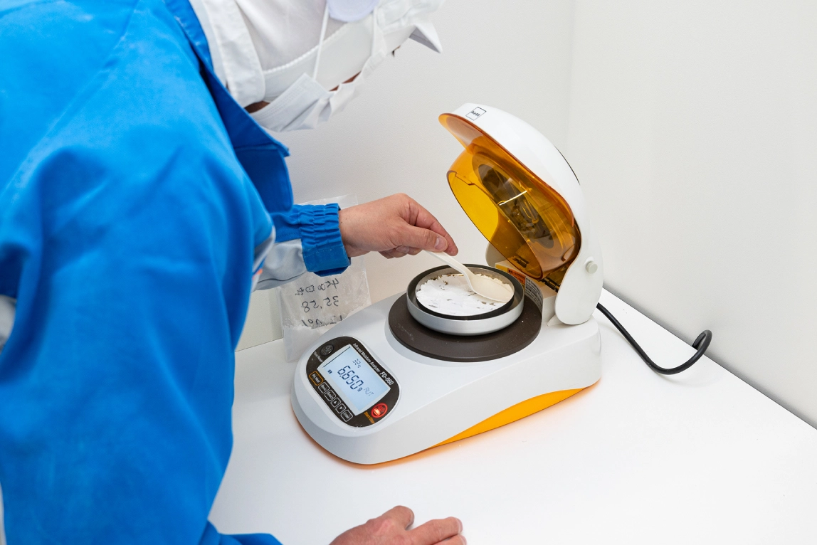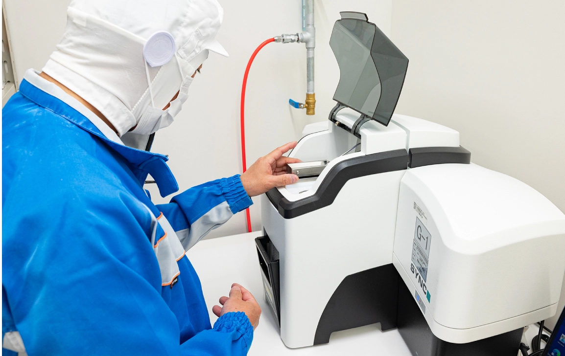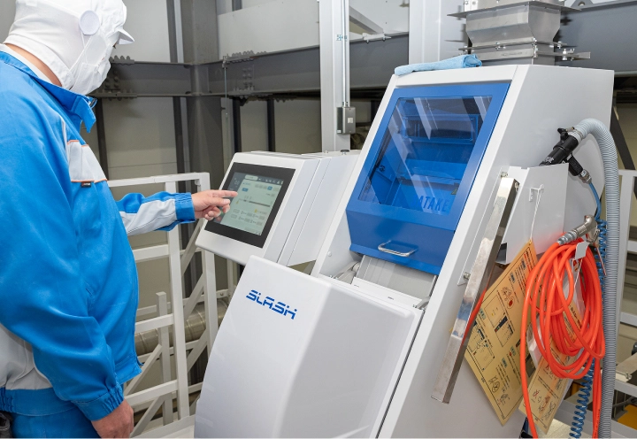 国が定めた米粉の品質基準に沿って、毎日の徹底した検査を欠かさずに行っております。常に安定した食感と加工性を実現するため、粉砕時および製品化の際に「赤外線水分計」と「粒度分布計」を用いて水分値と粒の大きさを測定し、最適な米粉を製造しております。データに基づく厳格な管理体制により、安定した品質をお約束いたします。