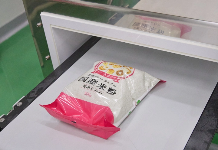 包装された商品の金属類の反応をチェックし、異物混入を防ぎます。
