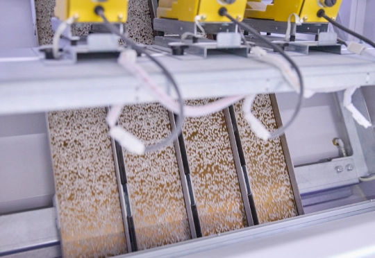 製造ラインはお米の割れや擦れの発生を最小限に抑える構造となり、お米の品質維持に適した環境となります。