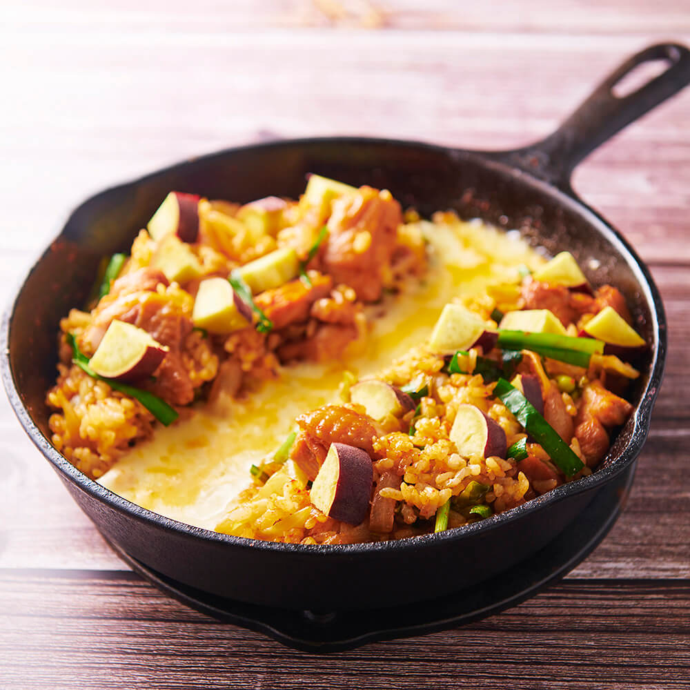 キャンプ飯にもぜひ!アツアツチーズタッカルビにご飯を入れてボリュームアップ